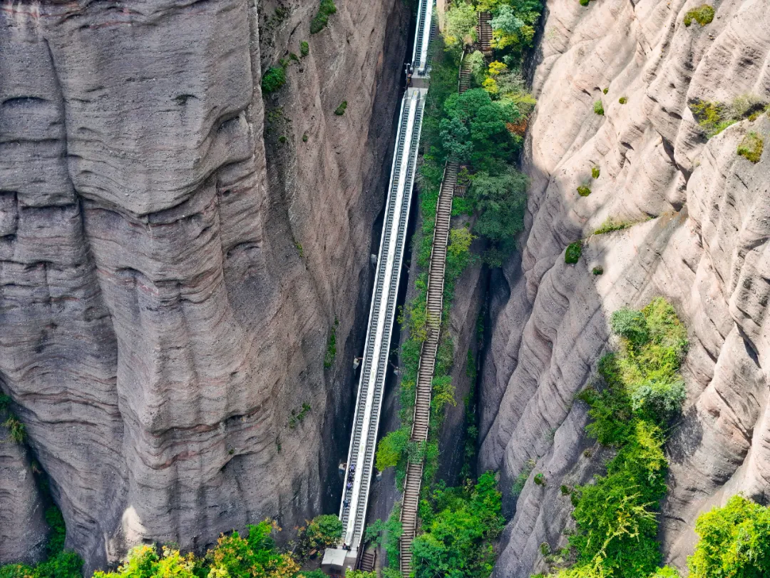 2023年8月3日,冠豸山景区通过国家文旅部5A景区景观质量评审的一周后,连城县召开冠豸山创建国家5A级旅游景区动员部署会,全面吹响了创建工作攻坚战的号角。以县委书记为组长、县长为常务副组长的领导小组成立,设立县创5A办,建立倒排工期、挂图作战工作机制。同时,制定下发《冠豸山创建国家5A级旅游景区工作方案和计划任务书》,将5A创建涉及到的156项工作任务,以责任清单的形式分解到全县15个部门、2个乡镇,各相关部门、乡镇主动认领任务,补短板强弱项,有效形成了“人人为创建、事事为创建、一切为创建”的浓厚氛围。去年国庆以来,最让登游冠豸山景区游客点赞的莫过于山间客运扶梯。受客观环境的制约,冠豸山景区的石门湖主出口只有一条陡峭的长廊上行到冠豸山长寿岩,它高低落差60多米,且需要徒步攀登266级台阶。阶长坡陡,给行动不便的游客造成较差的体验。