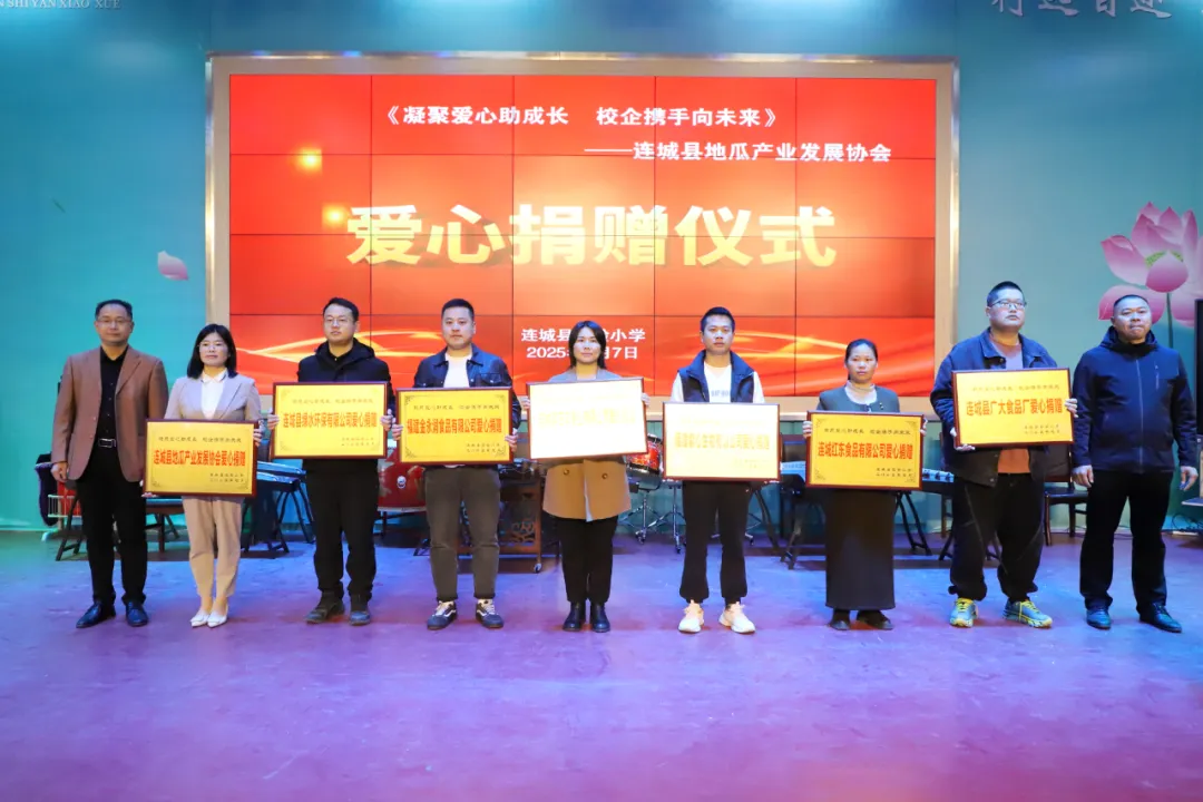 凝聚爱心助成长,校企携手向未来。当天,举行了捐赠授牌仪式,为连城县地瓜产业发展协会和爱心企业颁发爱心捐赠牌匾。