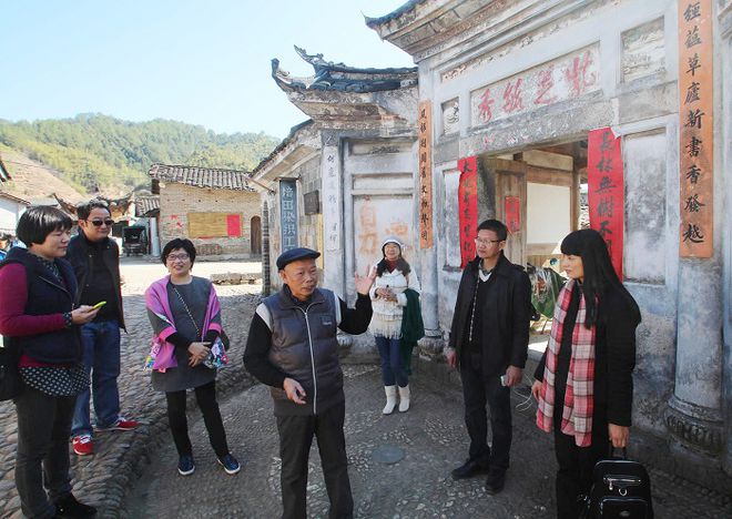龙门枋浅刻双凤朝阳图案,小额枋刻狮子舞绣球浮雕,中柱上正面、背面各有一副题联。至今仍保存完好的三十余栋高堂华屋、二十一座宗祠、六处书院、四座庙观、三种版本族谱、两道跨街牌坊、一条千米古街,不仅令世人惊叹往昔的辉煌,更令这座沉寂了八百年的古村落,再度浮出历史。