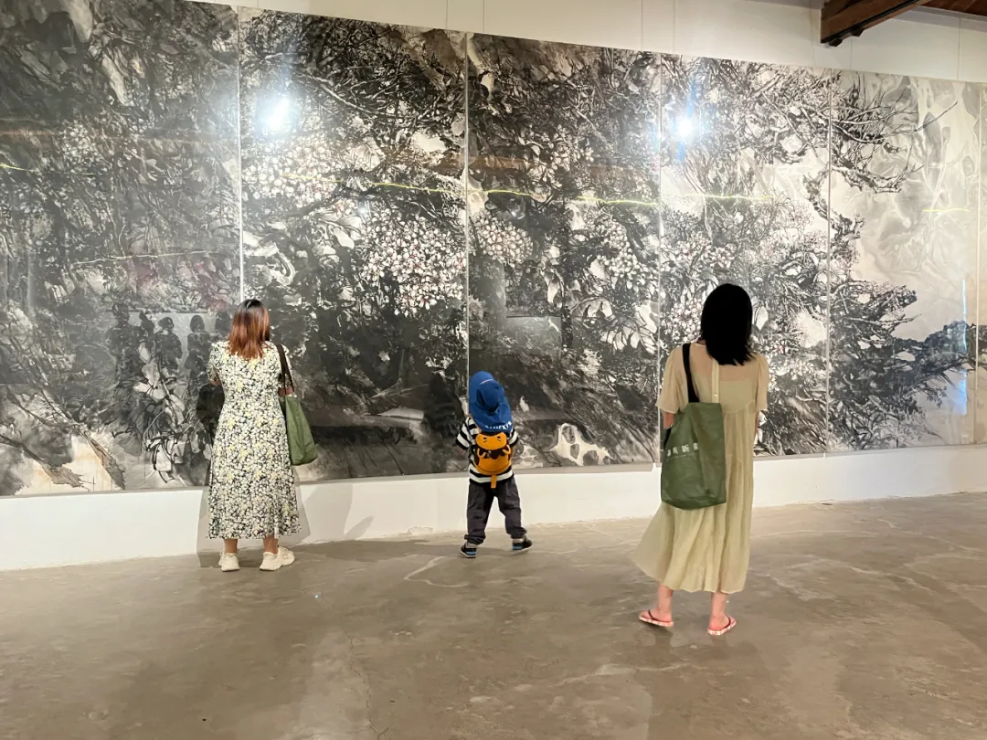 端午假期期间,记者在连城县培田美术馆看到,画家刘新才“古藤新芽”作品展正在展出,不少游客慕名而来,或是静静欣赏艺术作品,或者轻声交流,或是拍照“打卡”。