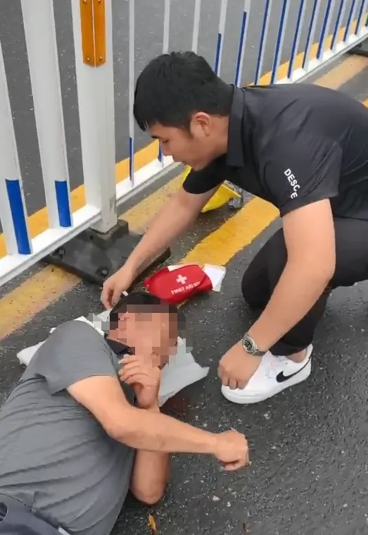 2024年6月9日17时57分,位于连城县朋口镇石背路的中国邮政储蓄银行交通护栏附近,发生了一起突发事件。一名男子突然倒地,身下出现大量血迹,情况十分危急。