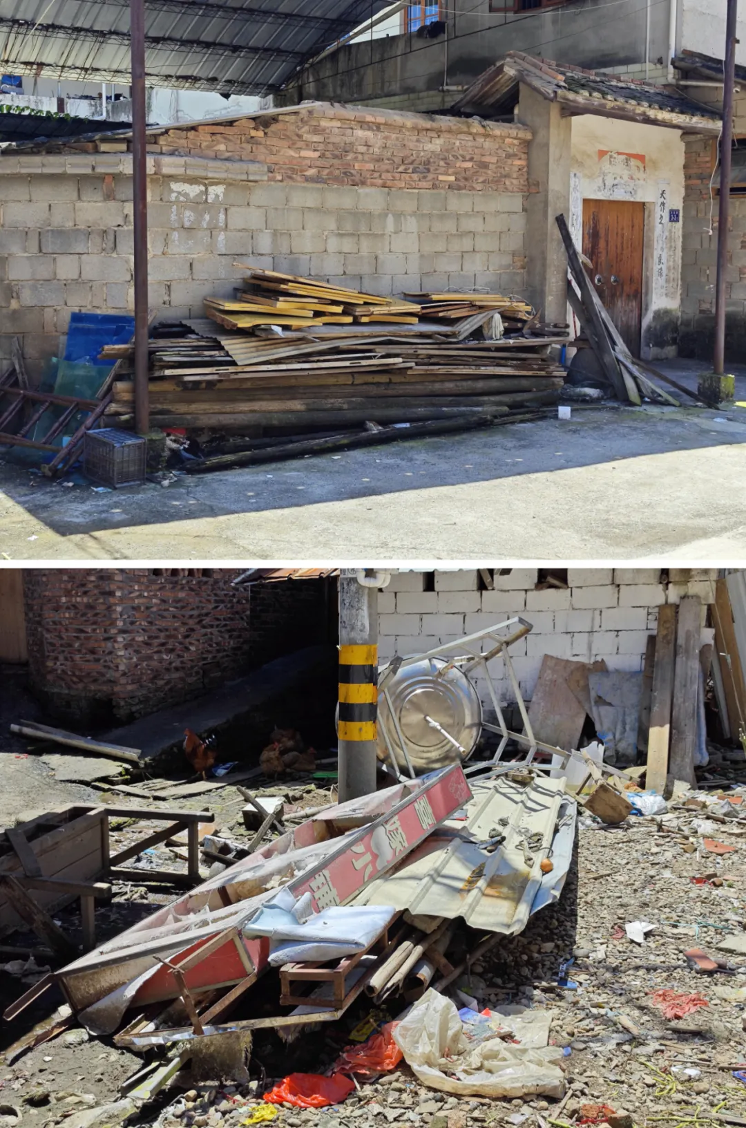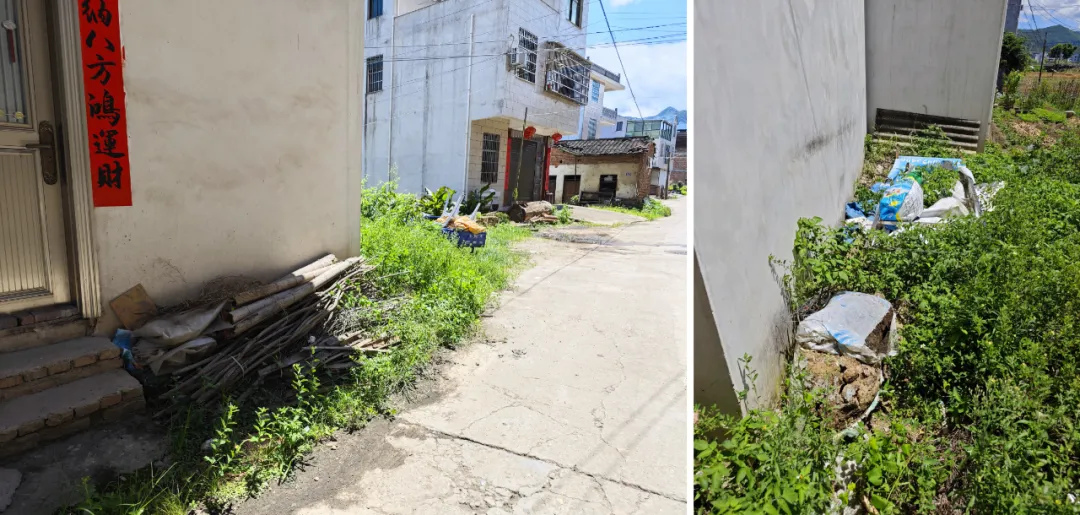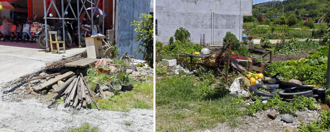 ▲ 房前屋后堆放杂物及生活垃圾未清理。