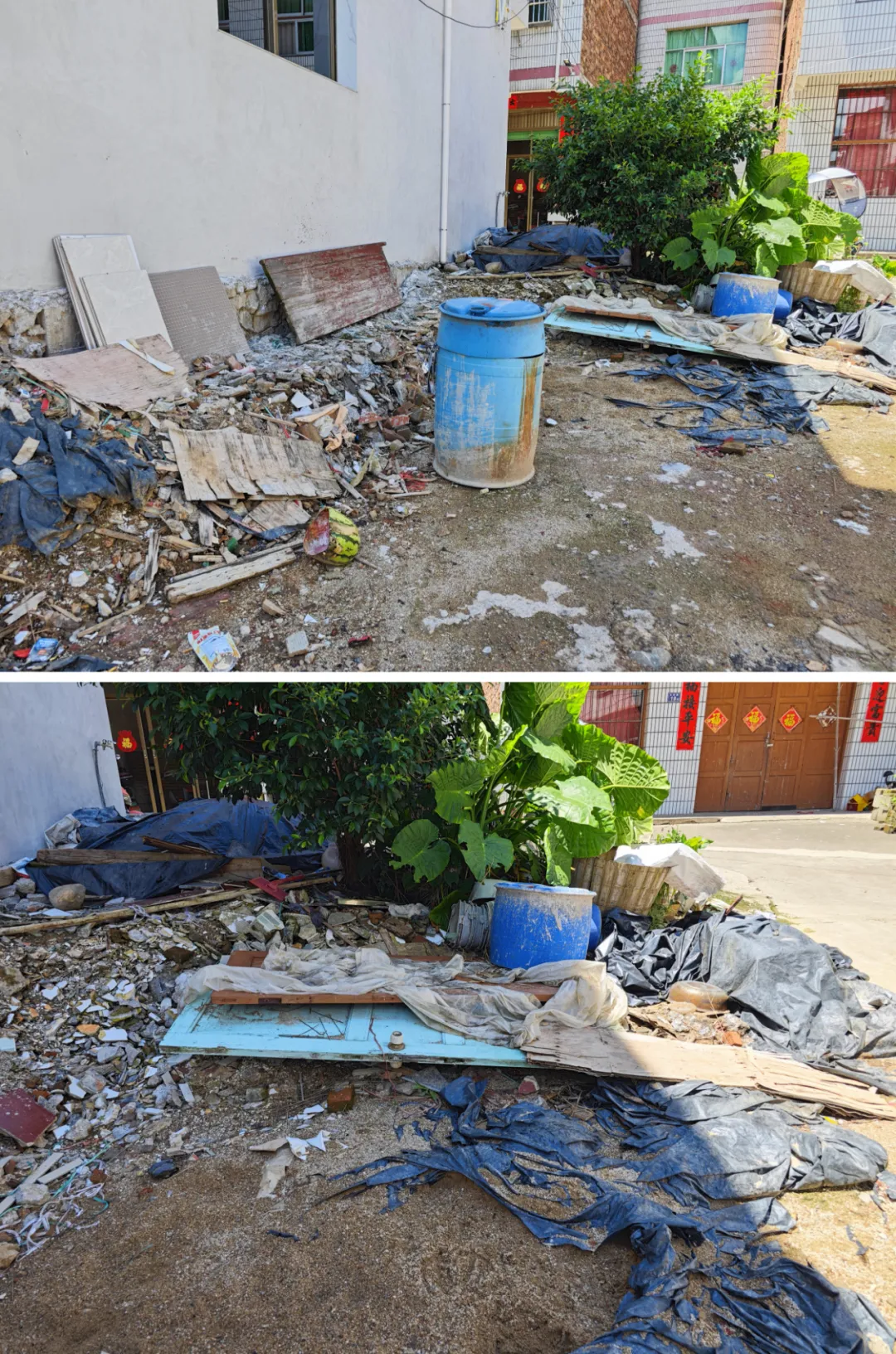 ▲ 房前屋后堆放建筑及生活垃圾未清理。