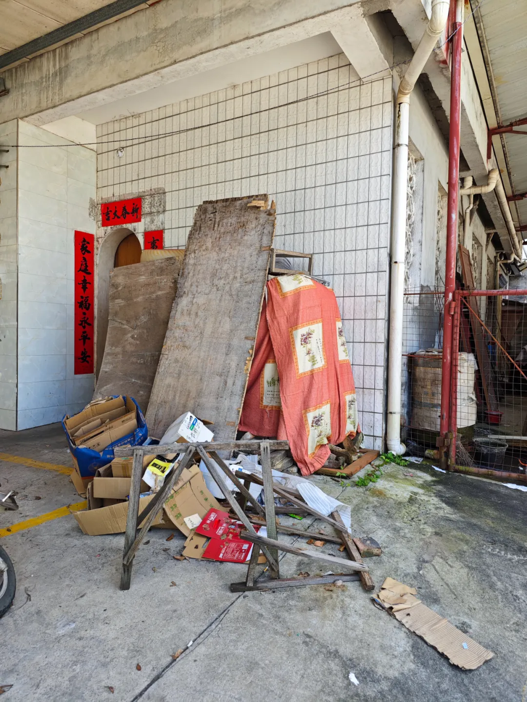▲ 厂房门口堆放杂物及其他垃圾未清理。