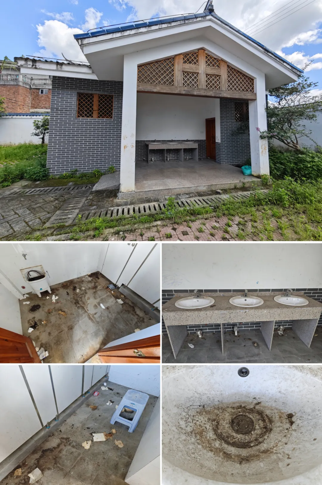 ▲ 旅游公厕内环境杂乱不堪,坑位及洗手池均无法出水,已不能正常使用。