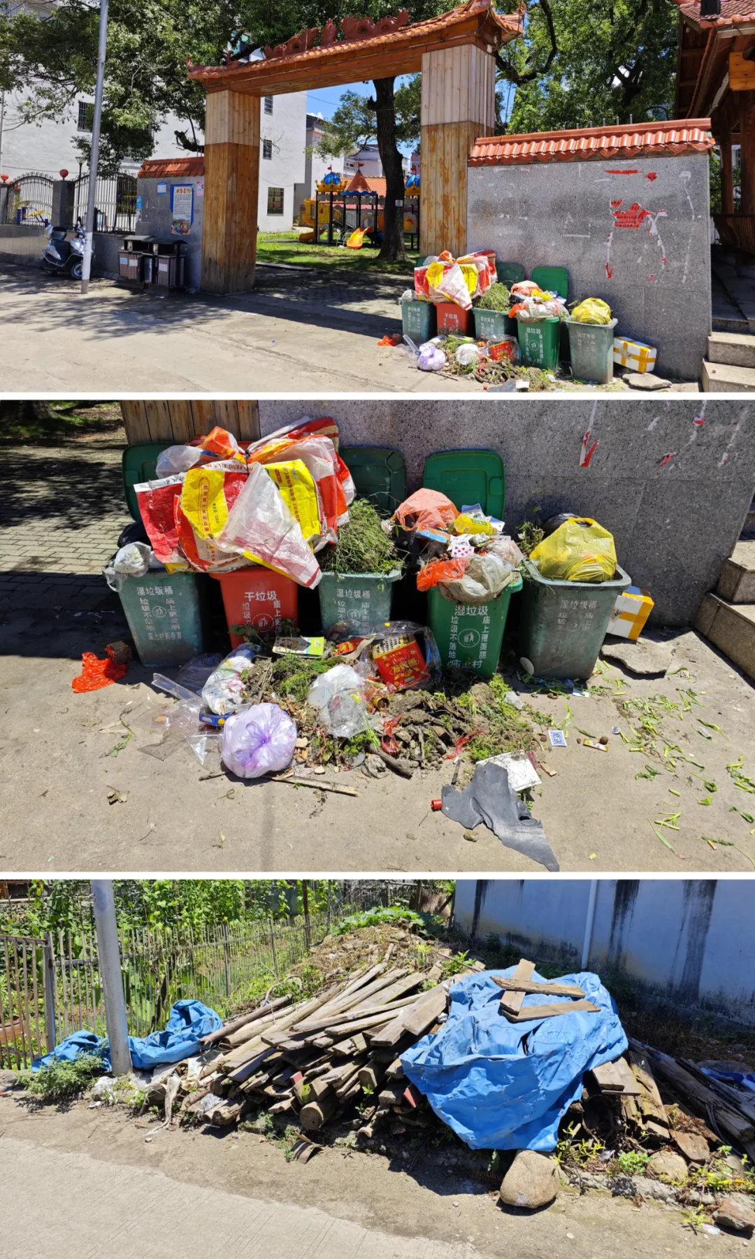 ▲ 垃圾桶垃圾溢出未清理,堆放杂物未清理。