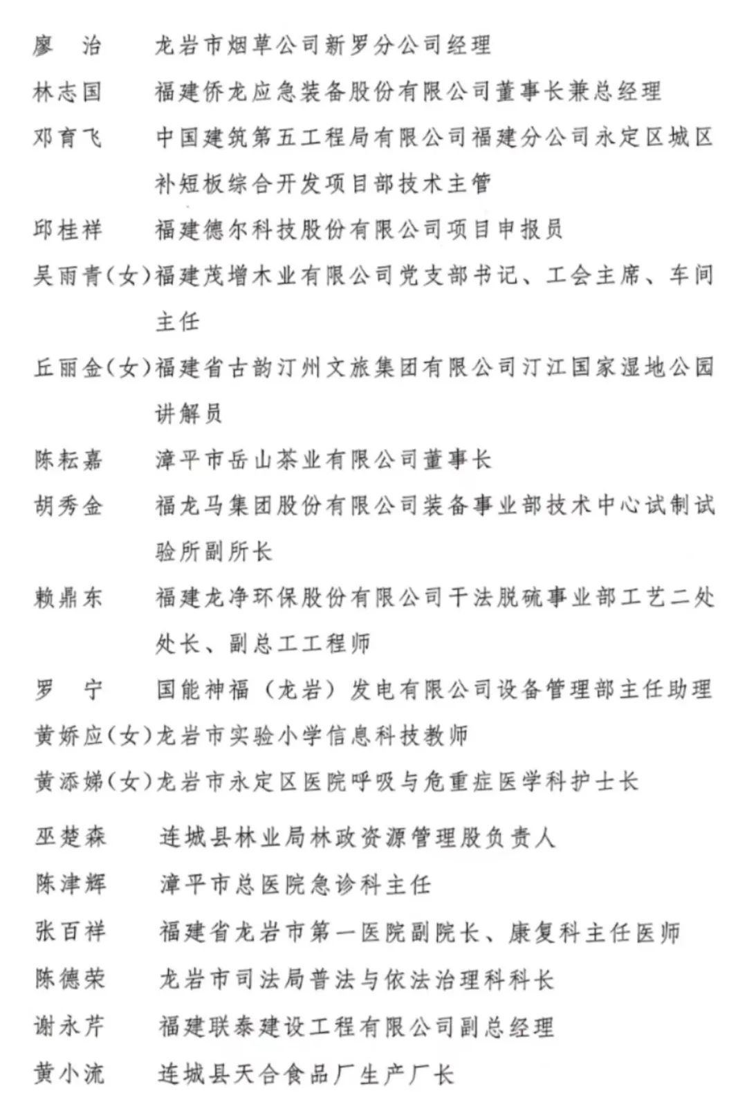 福建省五一劳动奖和工人先锋号名单揭晓,连城这些个人和集体上榜→