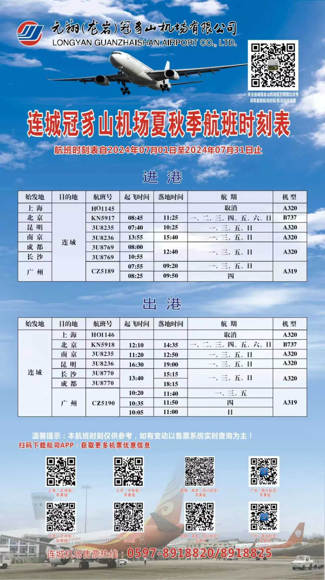 连城冠豸山机场因改扩建需要,从2024年8月1日起,暂停所有航线航班运营。我们对停航给您带来的不便深感歉意,也衷心感谢您一直以来对连城冠豸山机场的支持和理解。具体的复航时间,我们会第一时间向大家发布通知。
