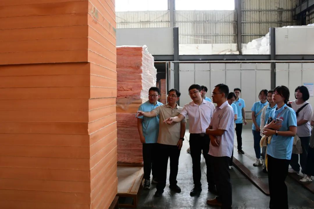 授牌仪式后,双方就进一步深化校企合作,推进共同育才、技术攻关等方面工作进行了深入交流。随后,福州大学化学学院师生一行先后参观了福建天利高新材料有限公司连续化发泡车间、合成车间、贴合车间。