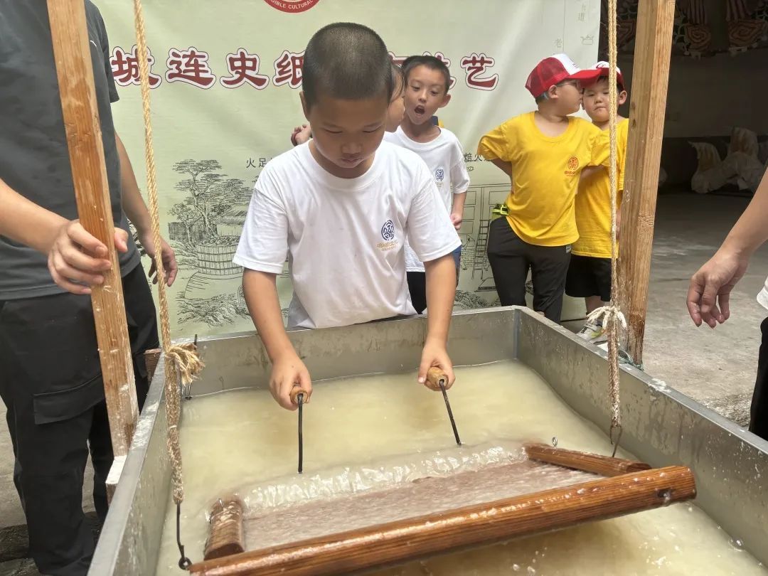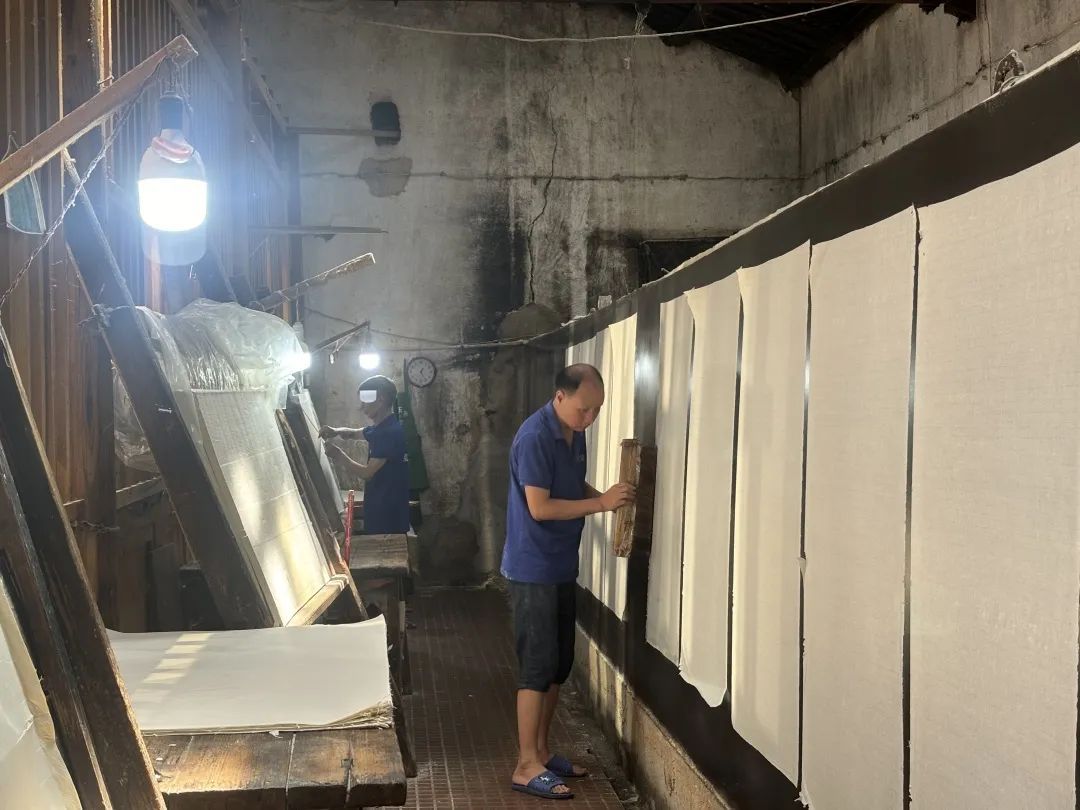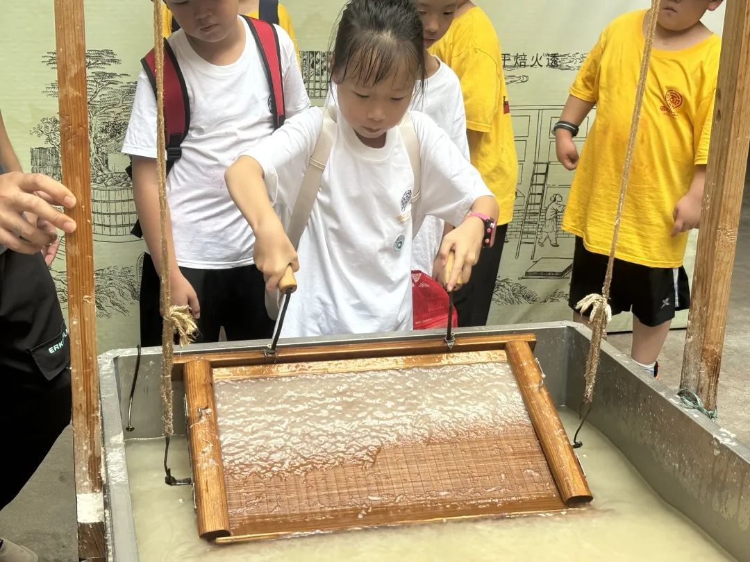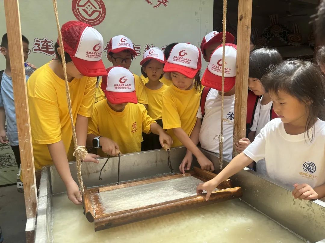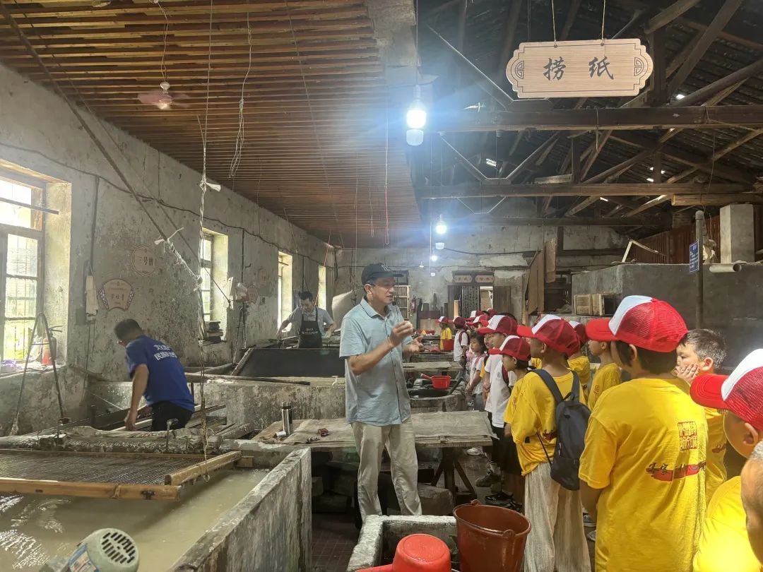 下午转至连城宣纸制作工艺传承体验中心,省级非遗代表性传承人邓金坤老师带领研学团成员参观连城宣纸制作流程,向大家细致地介绍连城宣纸的历史变迁及工艺特色等知识,感受那独特的非遗文化与时代印记。