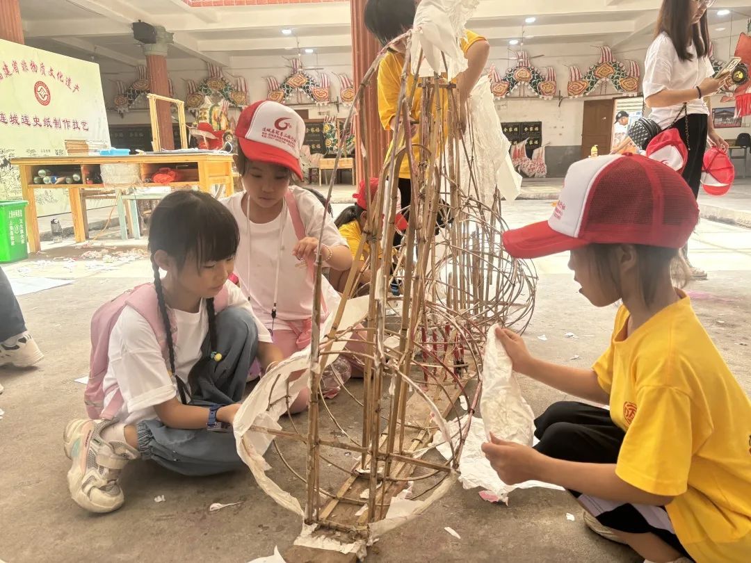 随后,一行人体验姑田大龙的制作,以竹篾为骨架、连城宣纸进行糊裱,看着五彩缤纷的大龙身,仿佛穿越回了那个精巧技艺与艺术完美结合的年代。随着非遗传承人老师娓娓道来的讲解,姑田游大龙的奥秘逐渐展开。