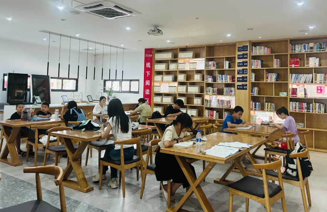在朋口镇冠豸书屋,馆内宽敞明亮、清凉静谧,书架上各类书籍摆放整齐,前来学习“充电”的市民和学生,或找寻读物,或坐下静读,或书写作业,遨游在知识的海洋里,尽情享受阅读的乐趣。
