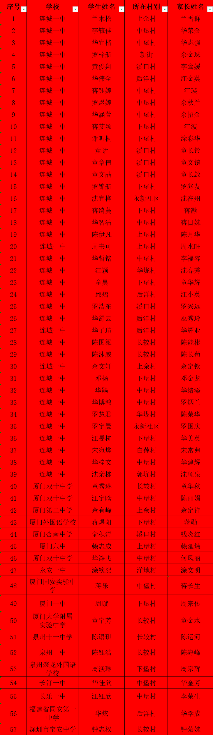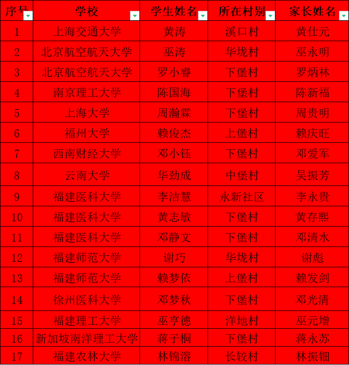 考录连城一中等省一级达标高中学生名单