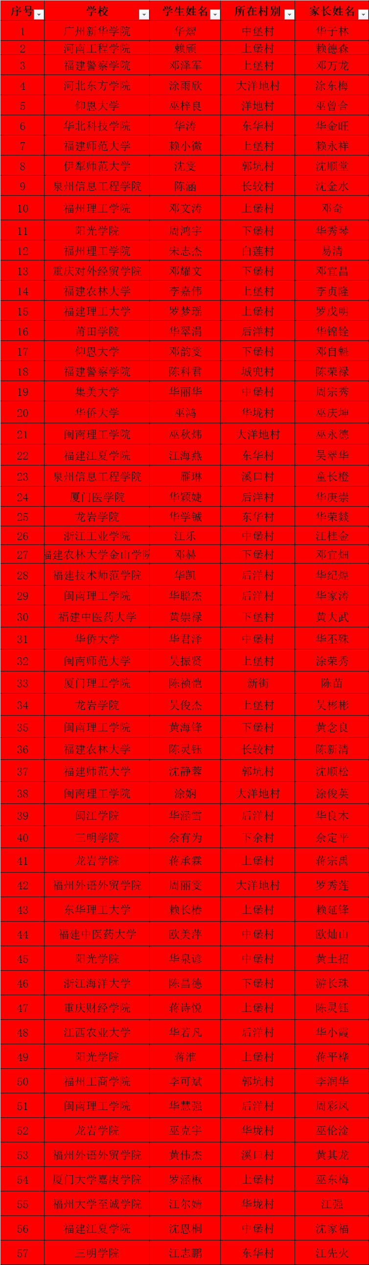 考录本科院校学生名单