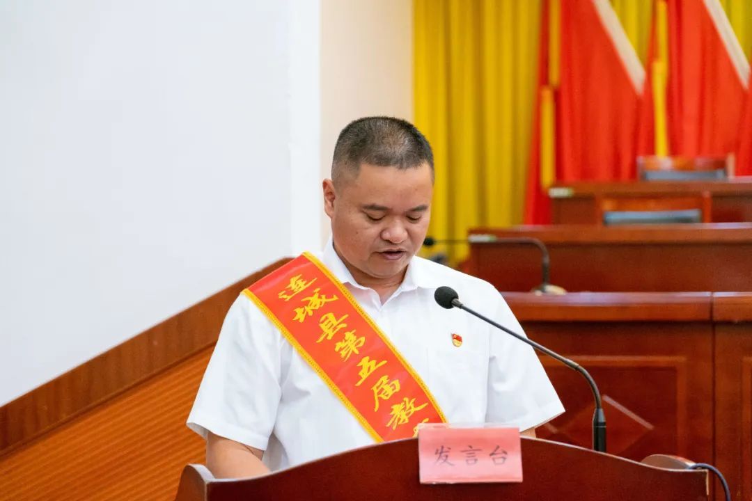 蔡东阳代表县委、县人大、县政府、县政协,向辛勤工作在教育战线上的全体教师、教育工作者及退休教职工致以节日的祝福和诚挚的问候,向受到表扬的先进个人表示热烈的祝贺,向所有关心支持连城教育事业发展的社会各界人士表示衷心的感谢。