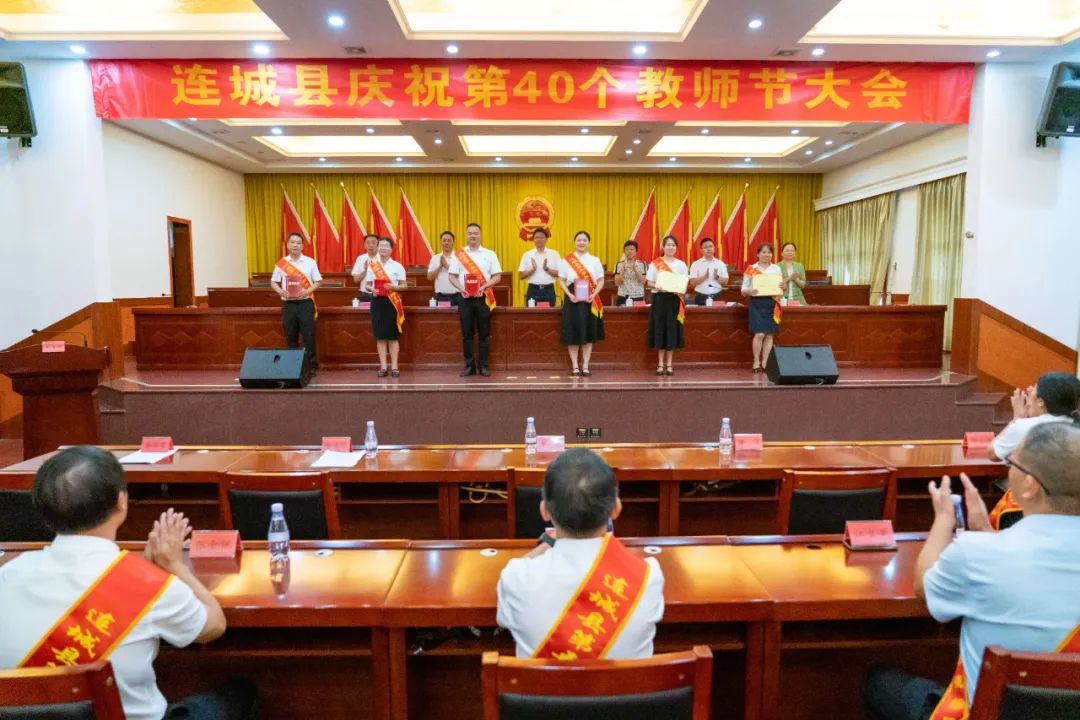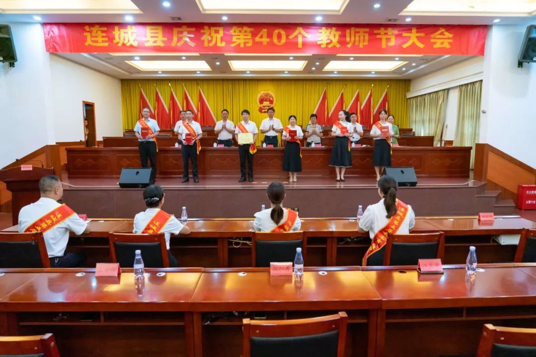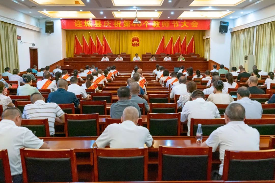 9月9日,连城县庆祝第40个教师节大会召开。县委书记蔡东阳出席并讲话。县领导赖小香、陈荣斌、罗天进、杨晓春、刘淑琴,县直有关单位和乡(镇)主要负责人,受表扬教师代表,有关学校负责人等参加大会。