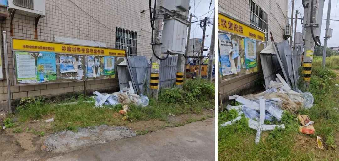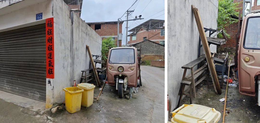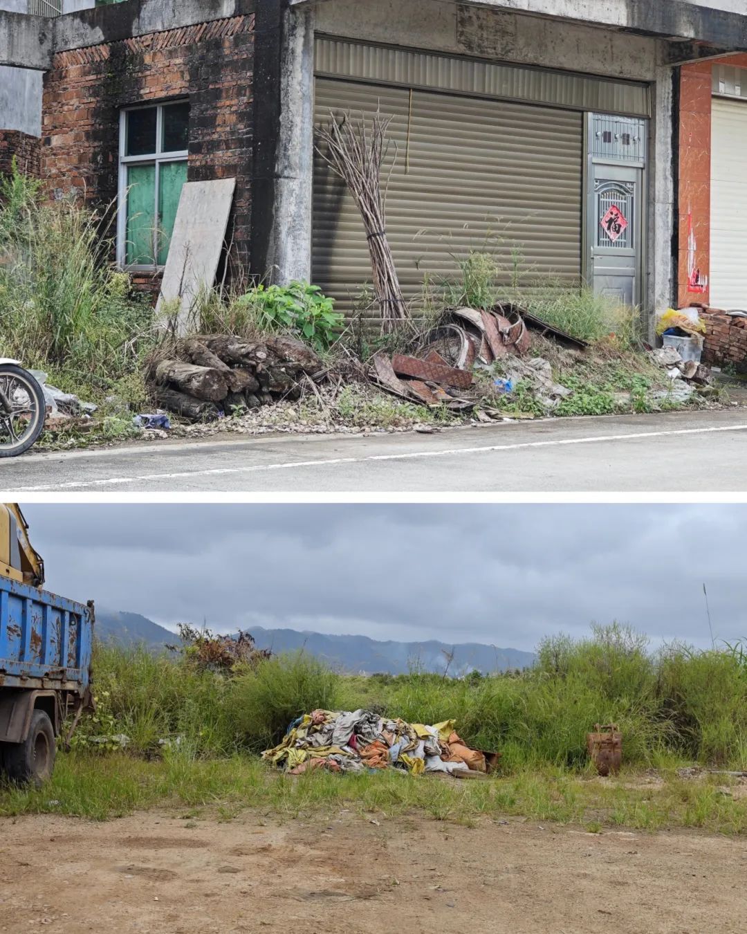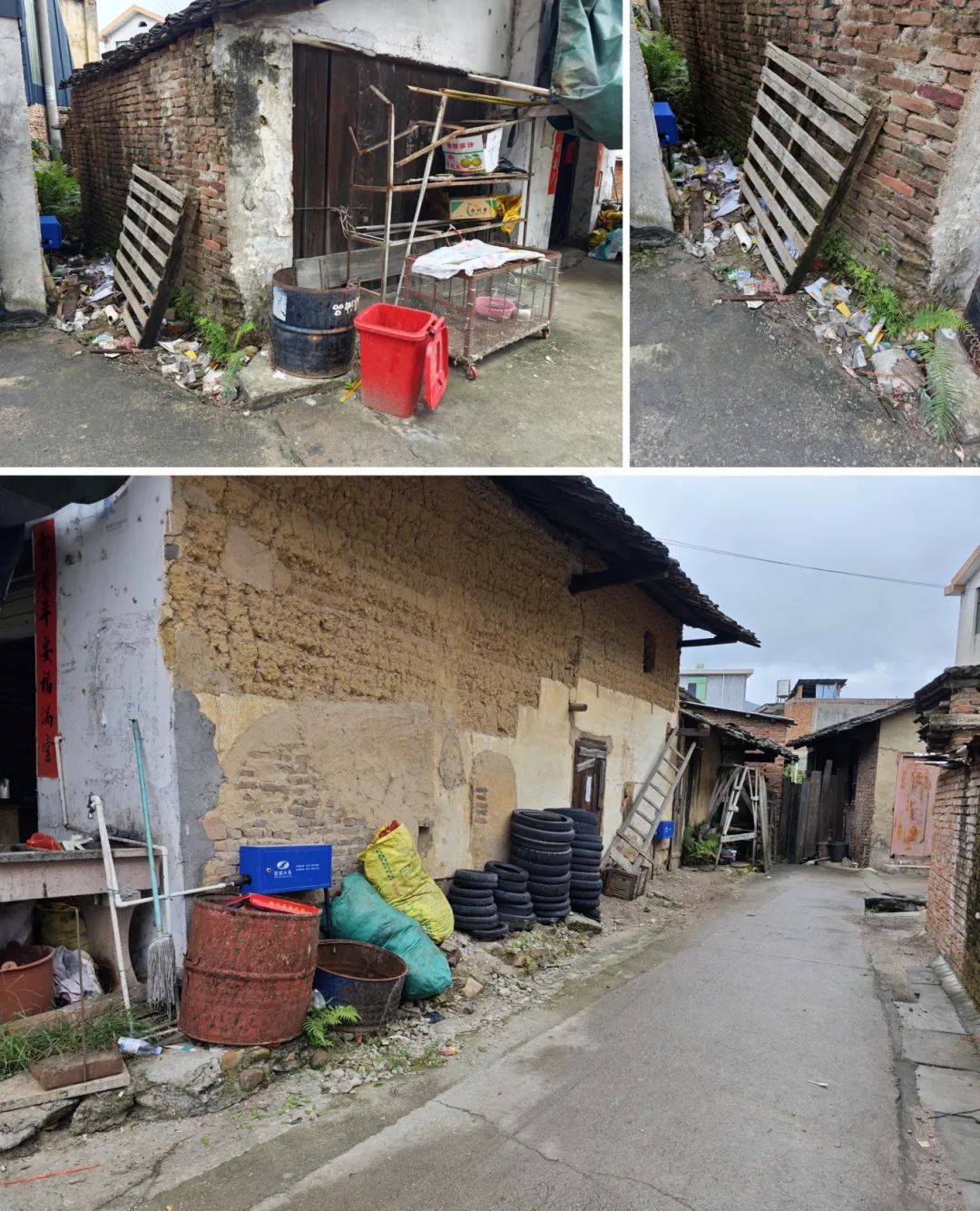 ▲房前屋后随意堆放杂物及其他垃圾未清理