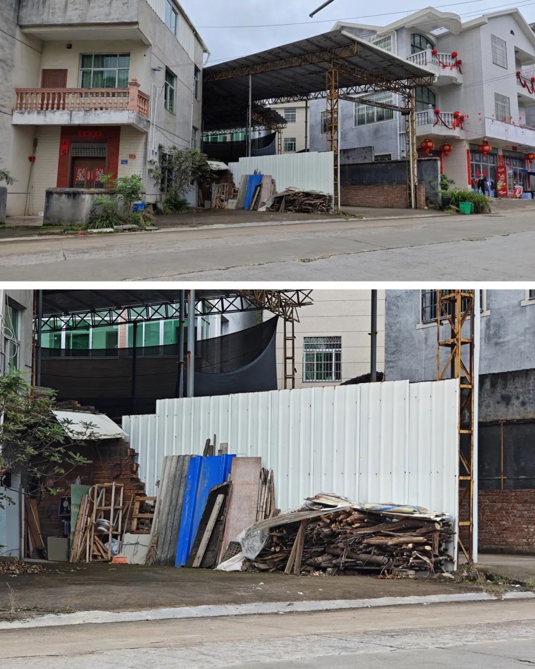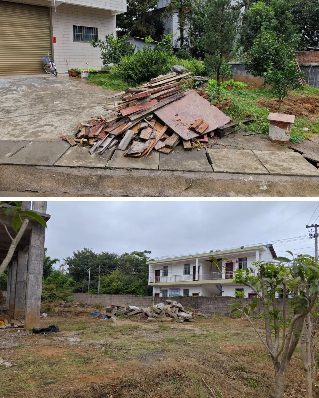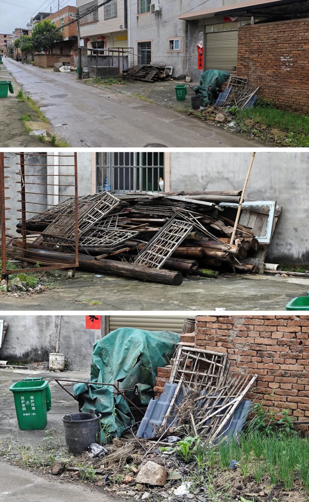 ▲房前屋后随意堆放废旧木材及其他杂物未清理