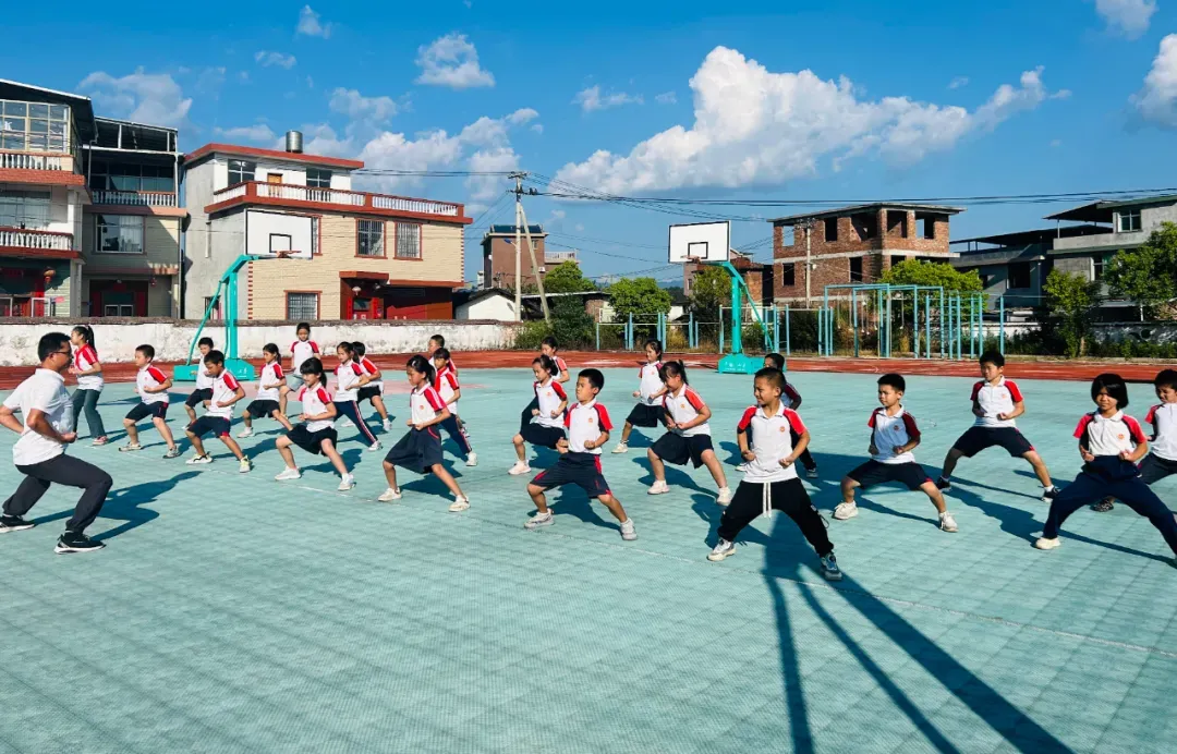 与此同时,在隔川中心小学大课间的操场上,350多名小学生正在练习“连城拳”武术操,动作整齐划一,甚是壮观,把“连城拳”的传承从娃娃抓起。
