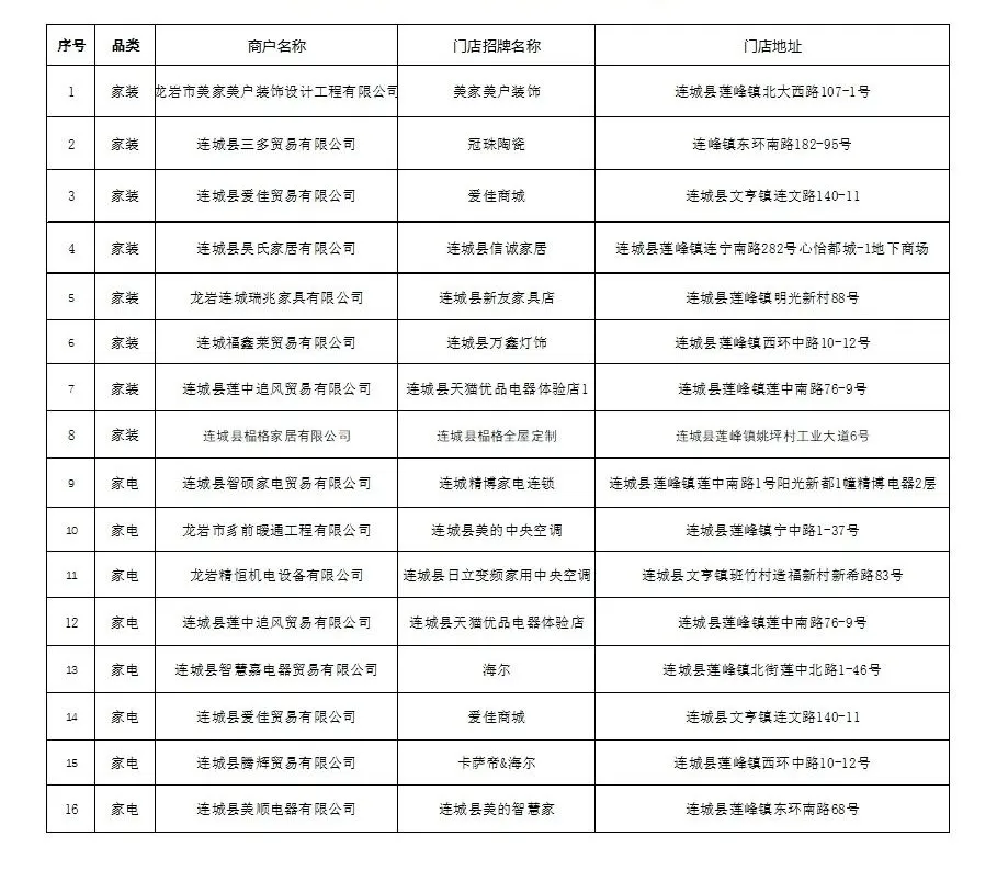 正式启动!连城县家电家装以旧换新活动首批参与企业名单公布