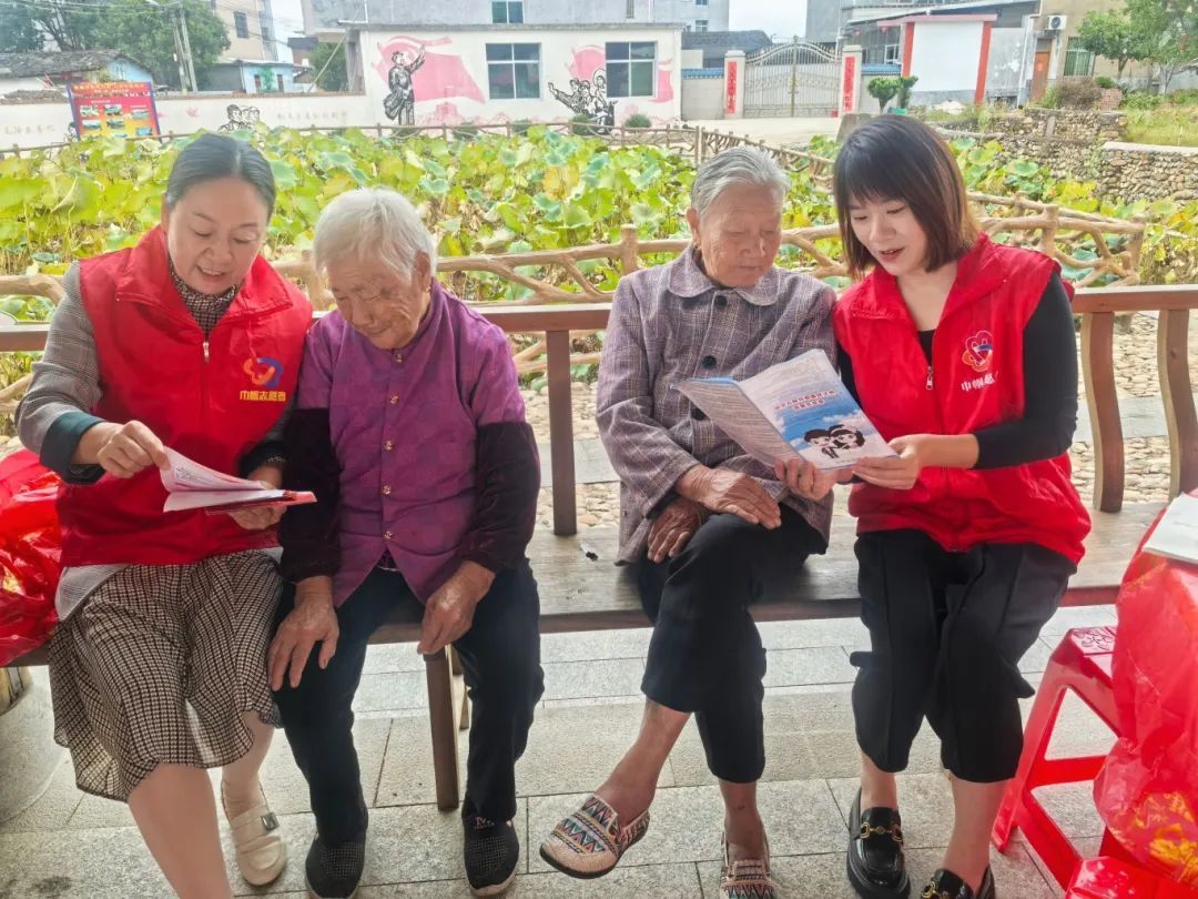 巾帼志愿者向老人们宣传党的二十届三中全会精神、防网络诈骗等知识,切实增强老年人防范意识,不断提升全社会对老年人权益保护关注度,着力维护老年人合法权益。