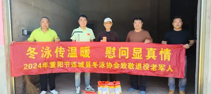 在秋意渐浓的重阳节,为进一步弘扬拥军优属、拥政爱民的优良传统,弘扬中华民族尊老、敬老、爱老的传统美德,营造全社会关心关爱退役军人的浓厚氛围,10月11日上午,连城县退役军人事务局联合连城县冬泳协会开展“百城千企暖兵心”重阳节慰问活动,携手向老兵致敬。