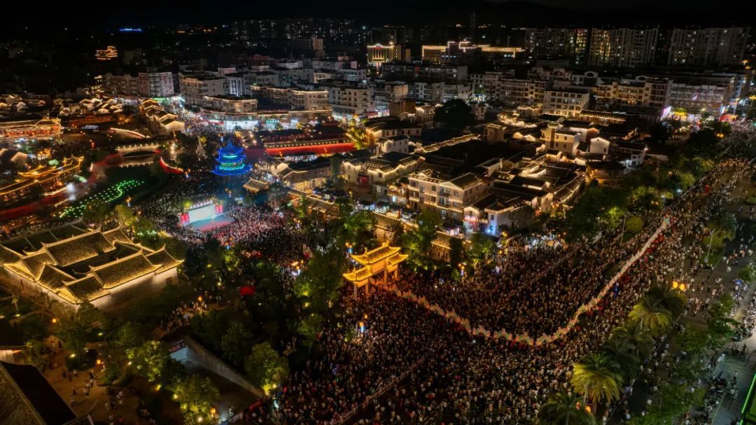 连城全力推动非遗文化的传承。今年“五一”、暑期和国庆黄金周,连城文旅新IP——“非遗奇妙夜”持续上演,观“天下第一龙”姑田大龙的风姿,赏芷溪花灯流光溢彩,看潮汕英歌舞、四川变脸吐火……非遗荟萃,梦幻联动,新意满满的文旅盛宴吸引市民游客流连忘返!