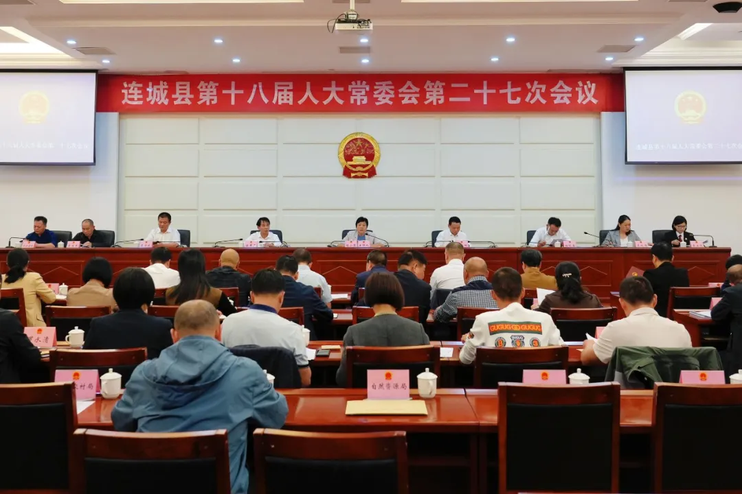 10月29日下午,连城县第十八届人大常委会第二十七次会议召开。县人大常委会主任赖小香主持会议,县人大常委会副主任李正鸿、陈革声、杨晓春、李学武等常委会组成人员出席会议。