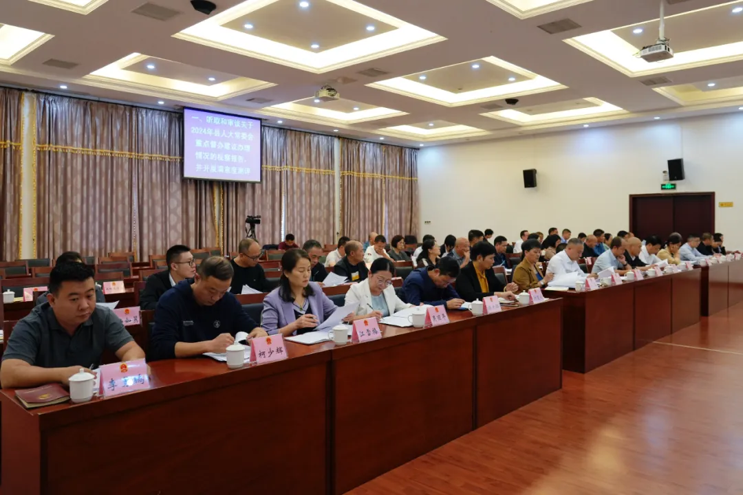 会议听取和审议关于2024年县人大常委会重点督办建议办理情况的视察报告,并开展满意度测评;听取和审议县人大常委会关于检查《龙岩市农村人居环境治理条例》实施情况的报告;听取和审议县人民政府关于提请审议批准2024年新增债务限额和举借计划的议案;听取和审议关于基本养老服务体系建设专项工作评议意见的整改情况报告,并开展满意度测评。