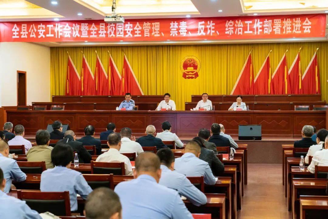 会上,县委常委、政法委书记谢富国通报我县禁毒、反诈、信访维稳、安置帮教、社区矫正工作情况及存在问题,副县长、县公安局局长卢广明传达全国、全省、全市公安工作会议及县委常委会会议精神,副县长刘淑琴通报校园安全管理工作情况,并分别部署了下阶段工作。会议以视频形式召开,各乡(镇)设分会场。