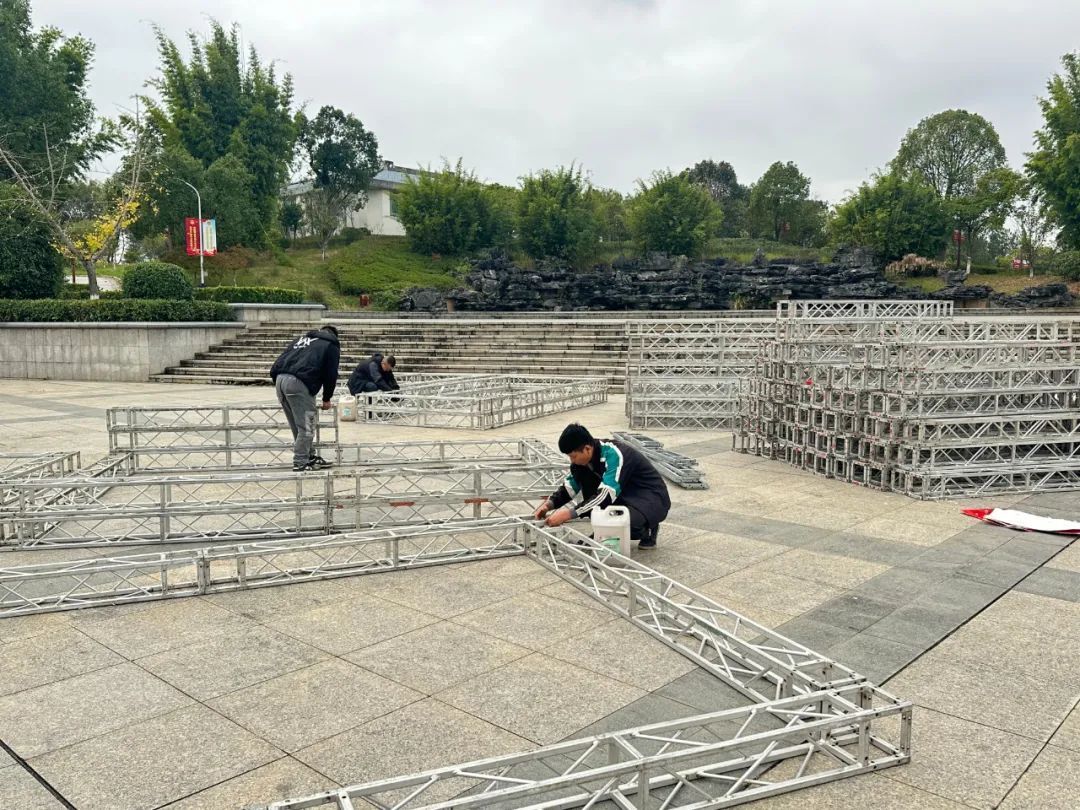 11月21日,记者在客家文化公园广场看到,工人们正在有序进行主会场的搭建。目前,赛事组织机构健全,分工明确,从赛事策划、宣传推广到安全保障、后勤保障等各个环节都进行了周密的安排与部署。
