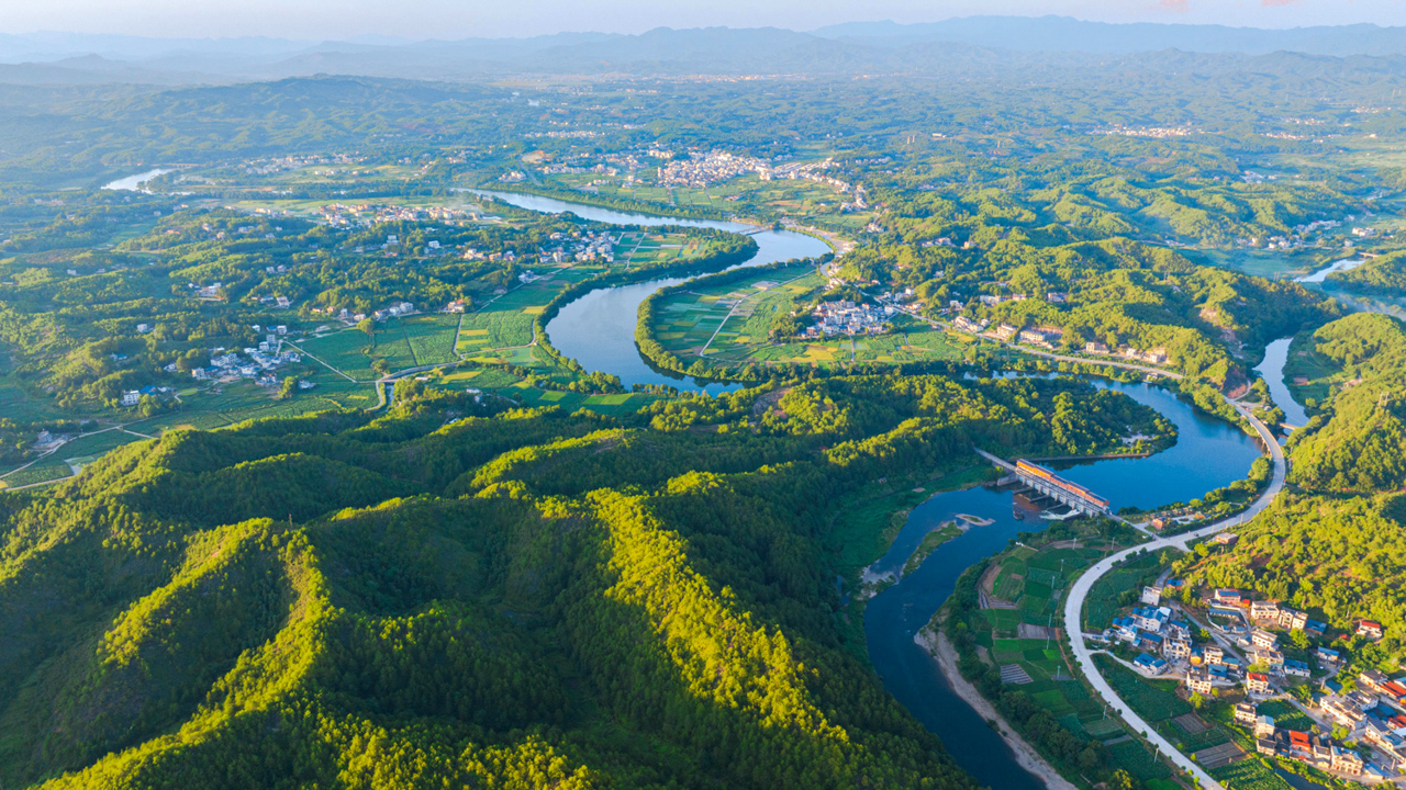 汀江国家湿地公园经过30多年的生态治理,实现了“火焰荒山-绿水青山-花果满山-金山银山”的历史性转变,是水土流失治理“长汀经验”升级版的生动展示,昔日水土流失重灾区,现已成为风光秀丽、流水潺潺、林果连片的生态旅游胜地。图为长汀汀江国家湿地公园景观。郑育红 摄
