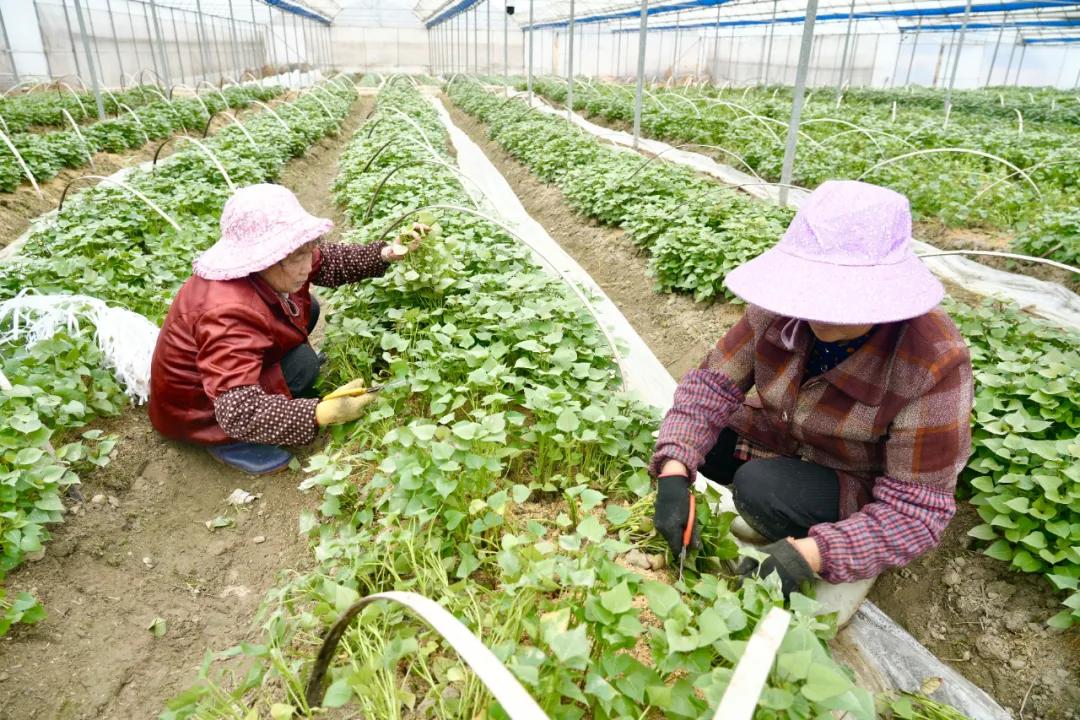 眼下,正值地瓜种苗扩繁的关键期。走进林坊镇地瓜脱毒种苗扩繁基地,只见一垄垄绿油油的地瓜种苗长势喜人,工人们手法娴熟地进行着剪苗工作,现场一片忙碌的景象。