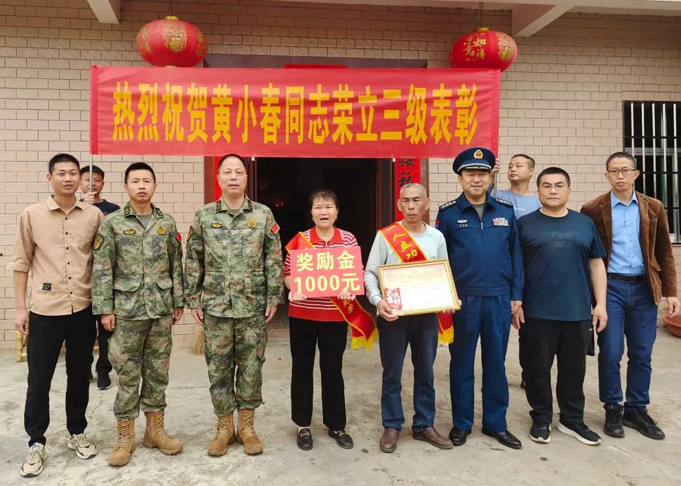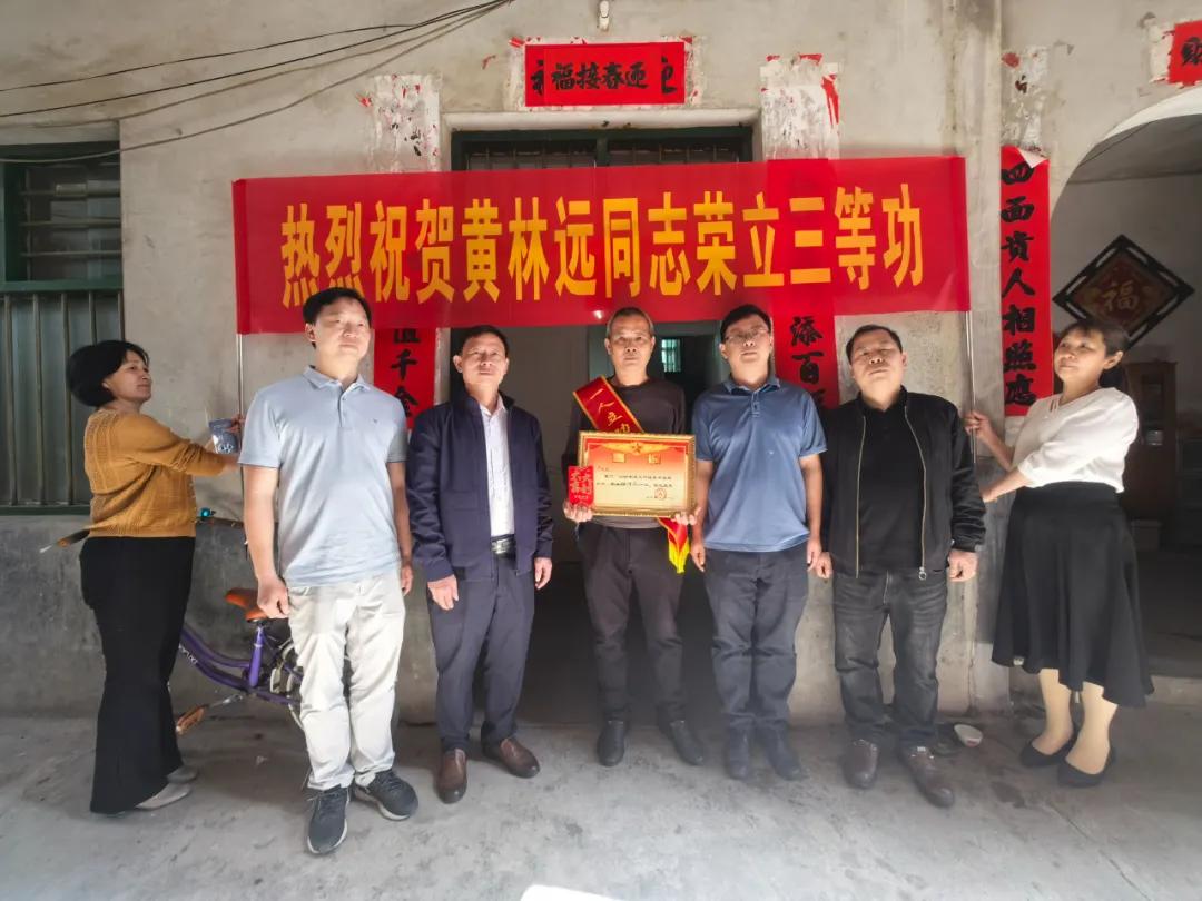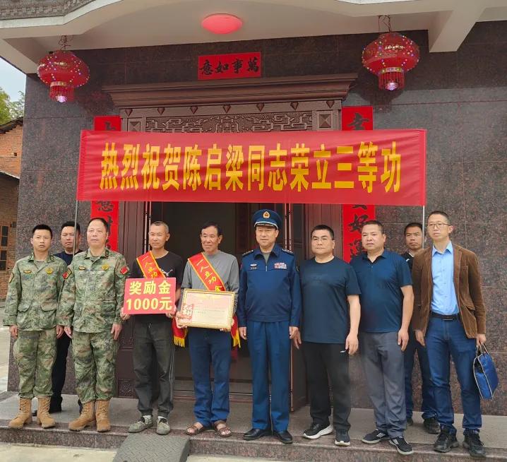 近日,连城县退役军人事务局联合县人武部、庙前镇及隔川镇组成送喜报慰问组为荣立三等功(三级表彰)的5名现役军人家庭送去立功喜报和慰问金,向家属表示热烈祝贺,让“光荣之家”更添荣光。