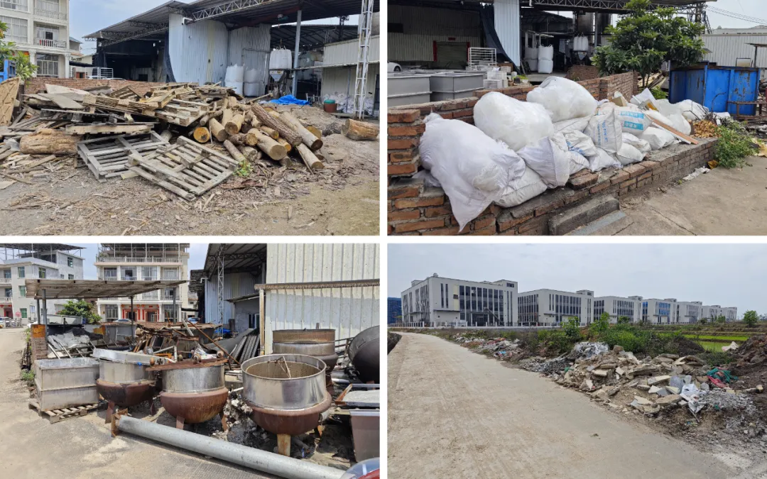 ▲厂房门口及沿路乱堆乱放各类杂物及垃圾未清理