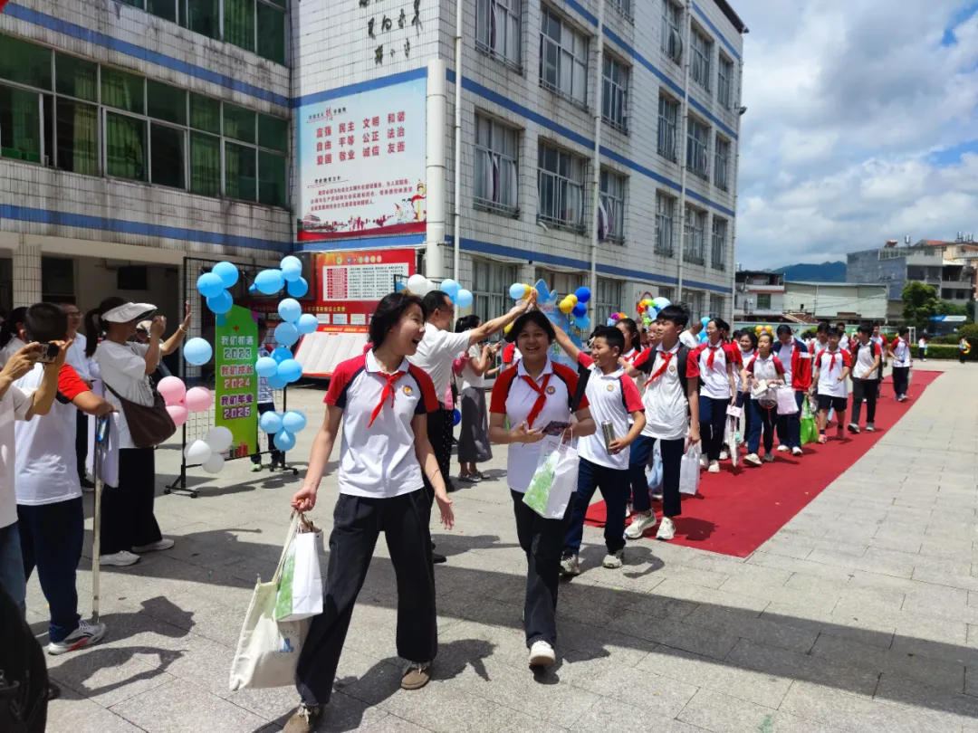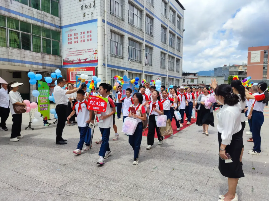 现场举行了升旗仪式、毕业致词、优秀毕业生和优秀进步生表彰、学生献花谢师恩等系列活动。欢送仪式上,五年级学生们一一为毕业生送上自己制作的小礼物或祝福贺卡,学生代表组成的花环队在校大门两侧欢送六年级毕业生,在祝福声中,六年级毕业生们迈出校门,奔赴更加美好的未来。