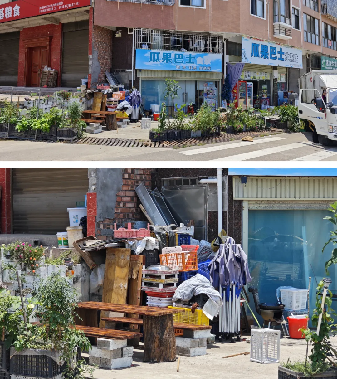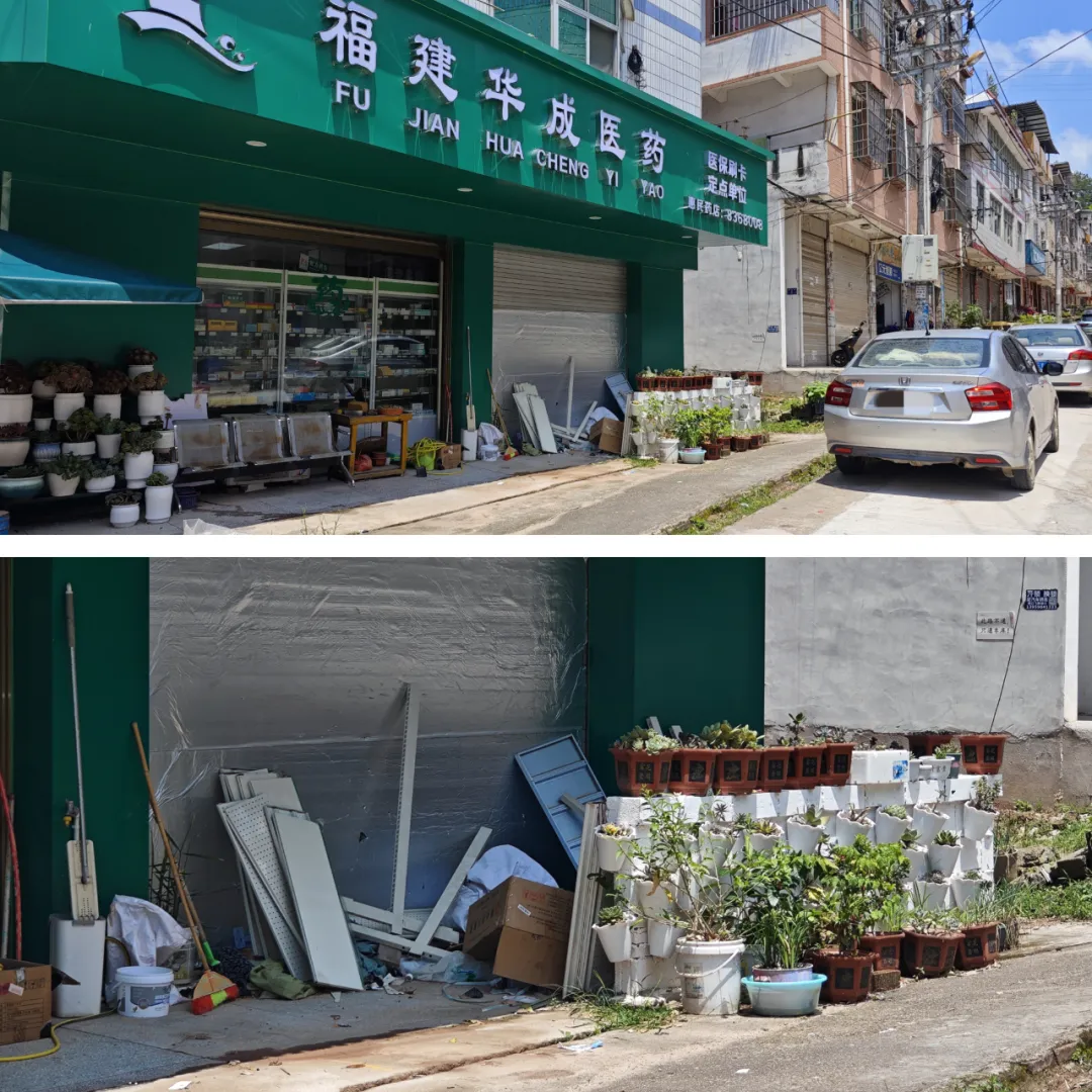 ▲店门口乱堆乱放各类杂物未清理