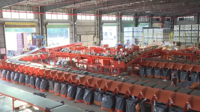 近日,在连城中通快递运转中心的分拣车间里,传送带持续运转,快递小哥们身着整齐的工装,紧密配合地投入到接车、取件、分件工作中,一派热火朝天的繁忙景象。