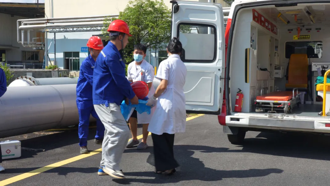 事故发生后,公司立即启动应急响应,开展事故救援,并对事故进行快速评估,预测有扩大风险,根据应急响应要求向相关单位报告,请求外部支援。园区应急指挥部迅速响应,调集应急救援小组、园区消防救援队、朋口镇中心卫生院医疗救护人员赶赴事故现场开展救援工作。