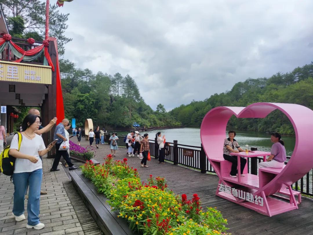 7月13日,记者在冠豸山风景区看到,碧水丹山间游客们醉情山水,忙着拍照留念,连城县举办的“夏夜童话”非遗奇妙夜活动,吸引众多游客前来游玩打卡。