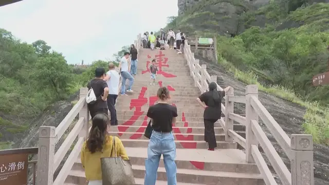 冠豸山的丹霞崖壁,石门湖的碧水潺潺,一幅幅美丽的山水画卷成了暑期连城的清凉名片。来自各地的游客沿着山路漫步,镜头定格下了美景,还有舒畅的心情。