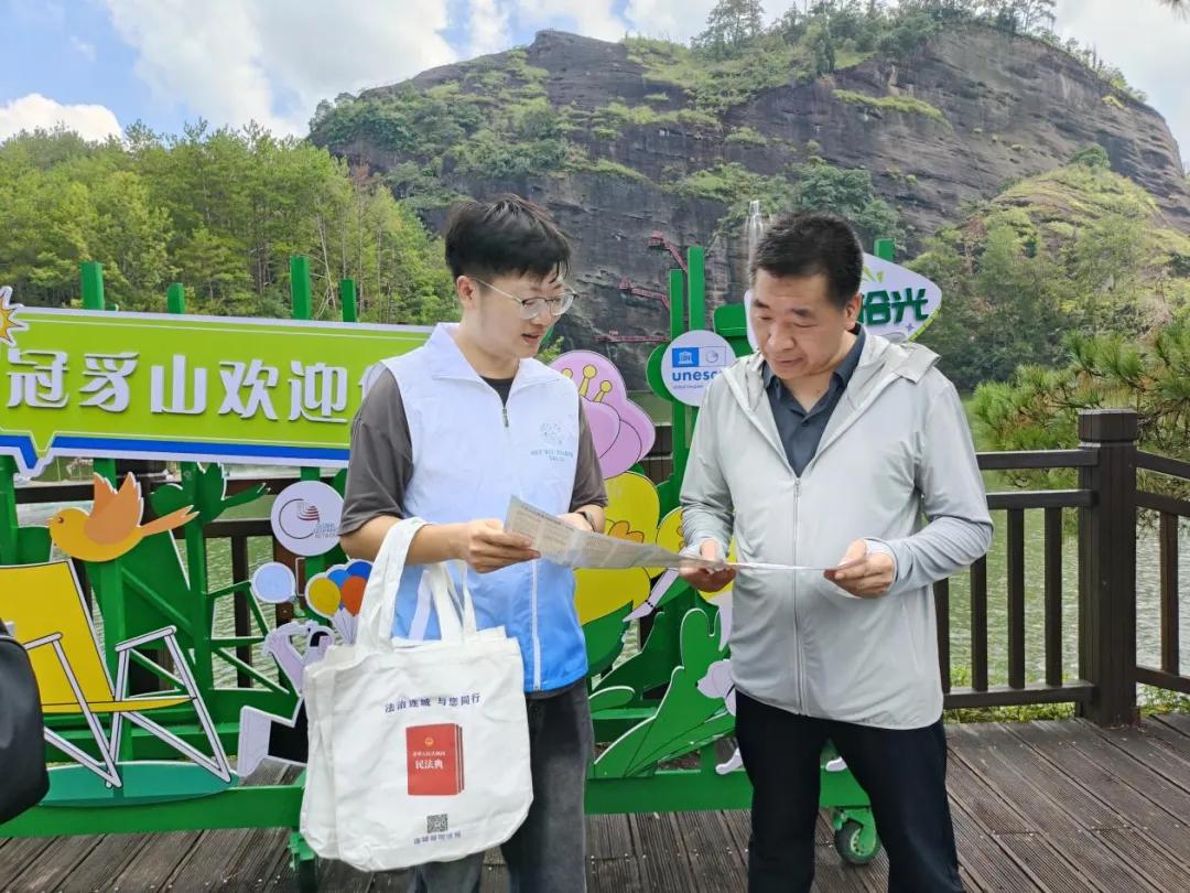 冠豸山水,价值连城。随着冠豸山成功创建为5A级旅游景区,越来越多的游客慕名而来,旅游业已成为连城县经济发展的一大亮点。近年来,连城县司法局紧密结合地域特色,以“法治+文旅”融合为抓手,多形式开展系列法律服务活动,为文旅行业发展注入强大法治动能。