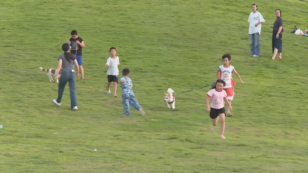 8月13日傍晚,冠豸山下的网红草山沐浴在夕阳里,不少市民带着孩子在软草地上追逐嬉戏、放风筝,欢声笑语伴着落日余晖,一派自在惬意的景象。