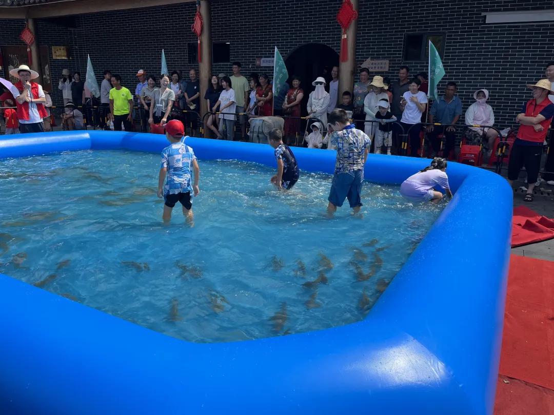 游客 李建龙说:“活动很有意思,套白鸭和浑水摸鱼的活动,既能亲近自然,又能玩得尽兴,让我找回了童年的快乐,我套到3只鸭子。”