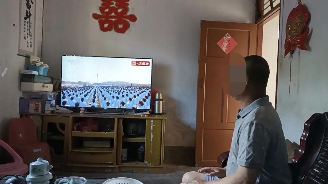 社区矫正对象们整齐就座,目光紧紧聚焦在大屏幕上。当抗战胜利80周年大阅兵的雄壮军乐响起,全体人员自发起立跟唱国歌。