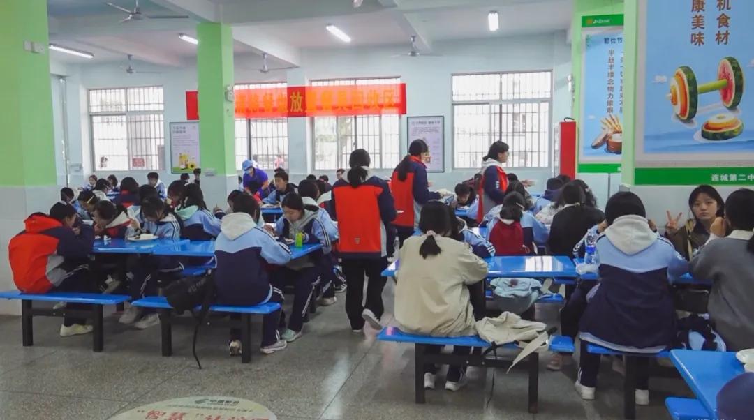 今年以来,连城二中通过闲置空间扩建餐区的民生工程,成功破解就餐难题,用实际行动赢得师生和家长的一致好评。