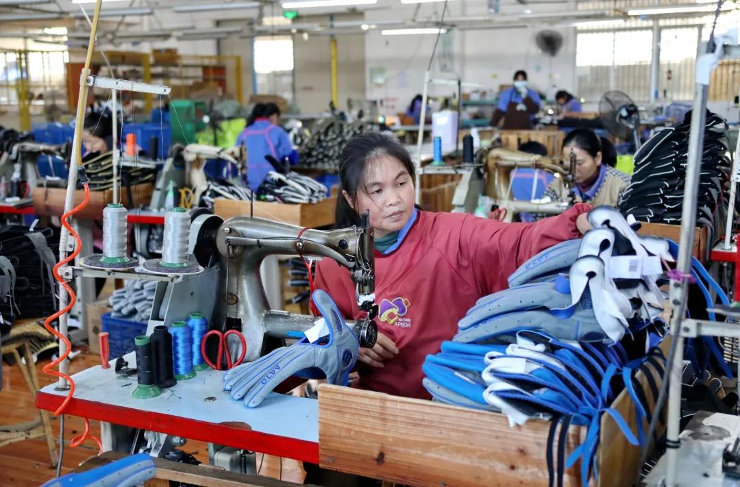 宏国(龙岩)运动用品有限公司的车间里,色彩艳丽的棒球手套让人眼前一亮。“以前都是暗色系,现在跟着市场变,年轻人都爱买!”副总经理肖紫燕拿起一款亮黄色手套介绍。面对国际关税贸易战带来的成本压力,宏国走出了一条“降本增效+设计革新”的路子:一方面找性价比更高的原材料替代品,另一方面引入电脑花样机、自动剪线机,商标缝制效率从日加工1000个跃升至3000个,不少工序效率翻倍,今年经营状况显著回暖,实现正增长。