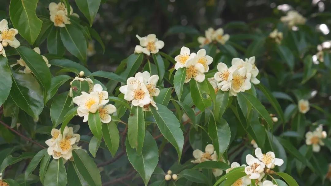 木荷是山茶科常绿乔木,树形美观,四季常青,是优良的园林景观树种,一般在入夏时节陆续开花,花期为5至7月份。木荷新鲜叶片含水量高达42%,是一种较好的耐火、抗火、难燃树种,被称为“森林防火卫士”。