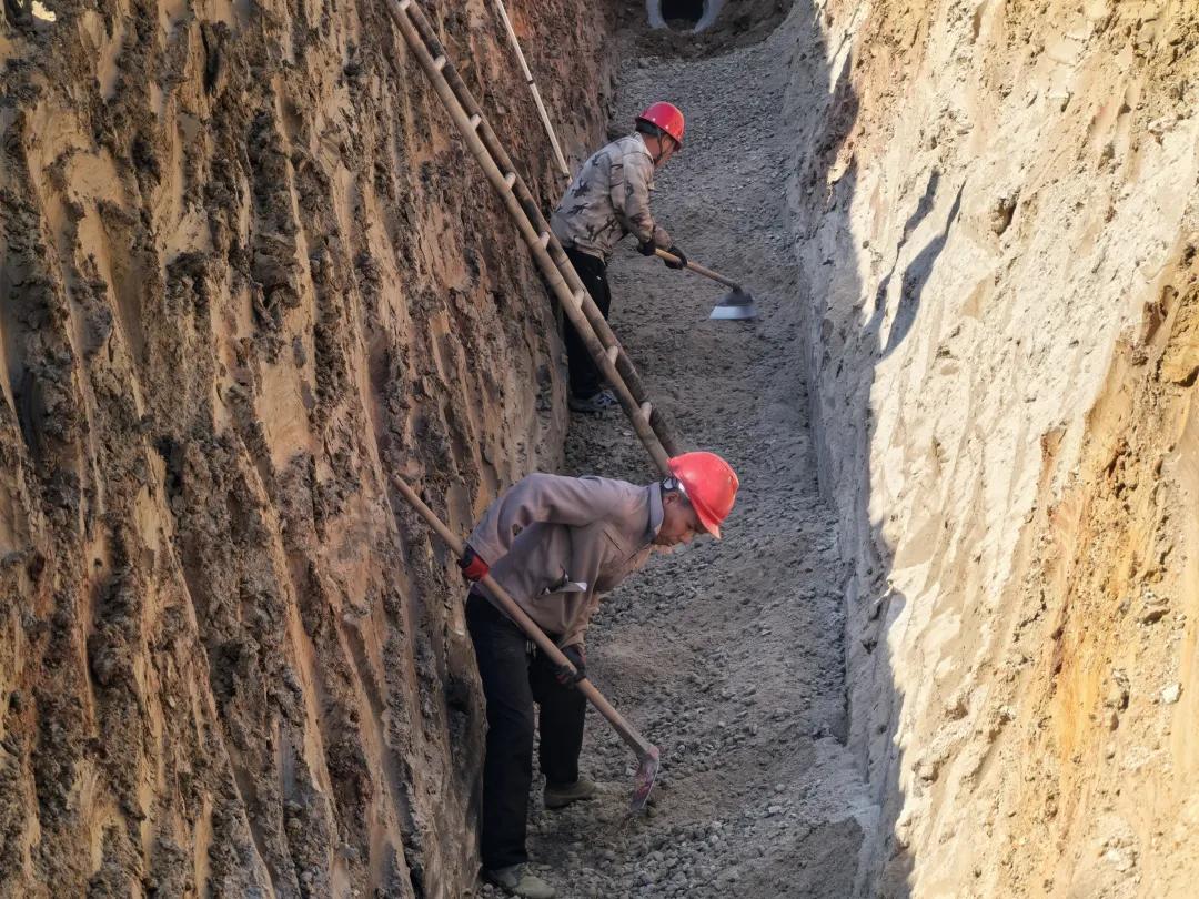 项目现场负责人李律南说:“现在主要进行水文站—大坪路段污水管网,雨水管网,电力,通信等管道施工,我们这个项目已完成了40%。”