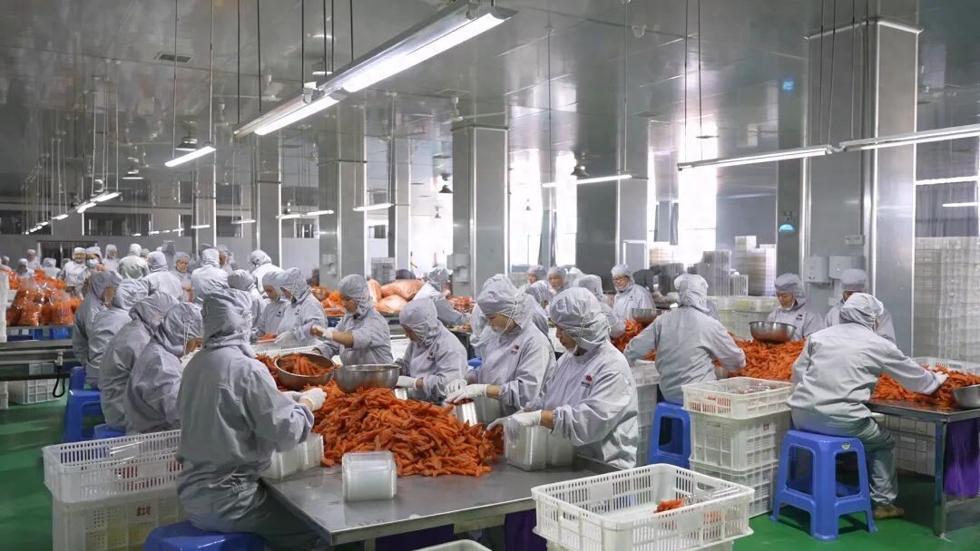 企业量身定制分拣、包装、质检等岗位,配套全链条免费技能培训,采用“企业下单、政府买单、宝妈接单”模式,帮助宝妈快速上岗。目前,全县地瓜加工企业为宝妈提供数千个稳定岗位,仅福农食品就吸纳300多名宝妈就业。城乡遍布加工点,覆盖17个乡镇、120多个行政村,农村户籍宝妈占比超80%,真正实现“足不出乡、顾家增收两不误”。